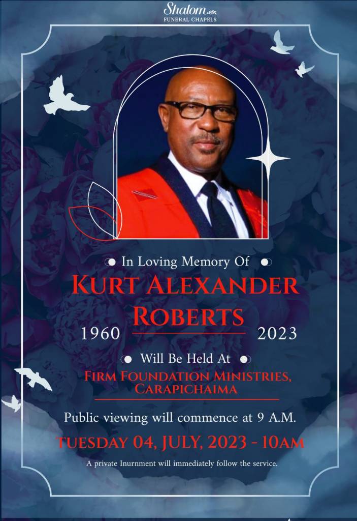The Roberts Family with hearts of acceptance announce the death of Mr. Kurt Alexander Roberts of Carapichaima, Trinidad and Tobago.